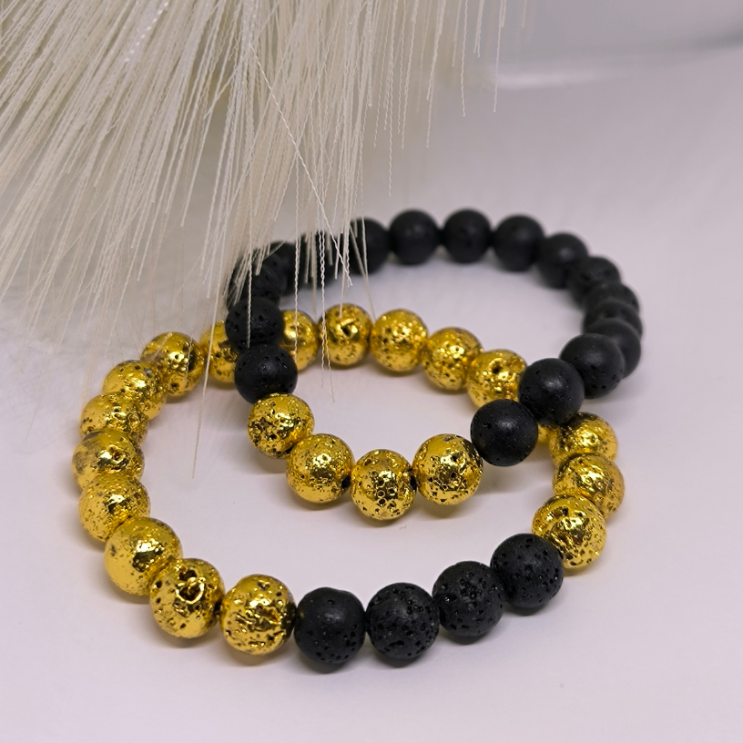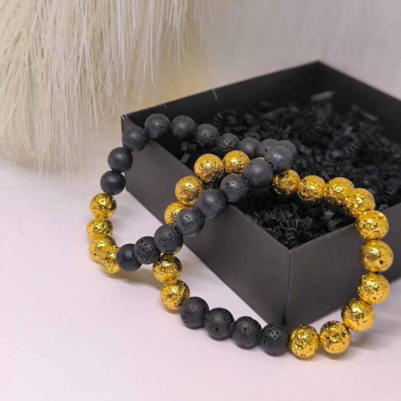🔥 Prabangos ir harmonijos derinys – rankų darbo lavos akmens apyrankių rinkinys!