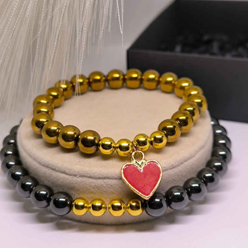 Norite išskirtinio aksesuaro, kuris simbolizuotų jūsų tarpusavio ryšį? Šis rankų darbo apyrankių rinkinys su natūraliais hematito karoliukais ir elegantiškomis aukso spalvos detalėmis – puikus pasirinkimas tiems, kurie vertina stilių, harmoniją ir gilią prasmę. ❤️✨