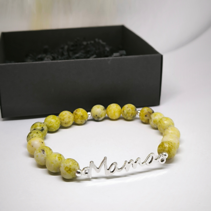 🌟 Rankų darbo apyrankė „Mama” – tai išskirtinis papuošalas, kuris taps ypatinga dovana Motinos dienai! Pagaminta iš natūralių turkio akmens karoliukų, ši apyrankė ne tik atrodo elegantiškai, bet ir turi harmonizuojančių savybių. Sidabro spalvos detalės suteikia šiai apyrankei šiuolaikiško žavesio, o unikalus užrašas „Mama” simbolizuoja meilę ir dėkingumą. 🎁