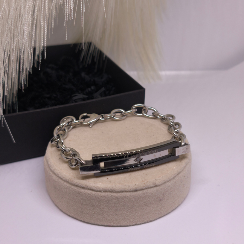 💖 Apyrankė „I Love You Most“ – tai meilės ir nuoširdumo išraiška, kuri primena, jog tikra meilė niekada nesibaigia. Ši stilinga apyrankė pagaminta iš aukštos kokybės nerūdijančio plieno, todėl išlaiko savo blizgesį ir eleganciją daugelį metų ✨.