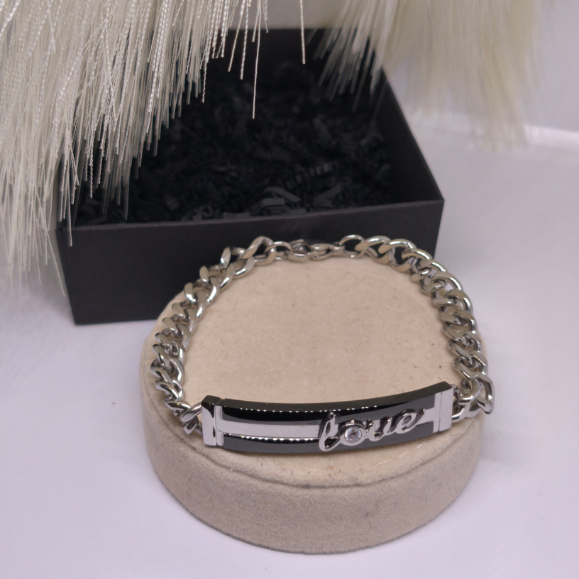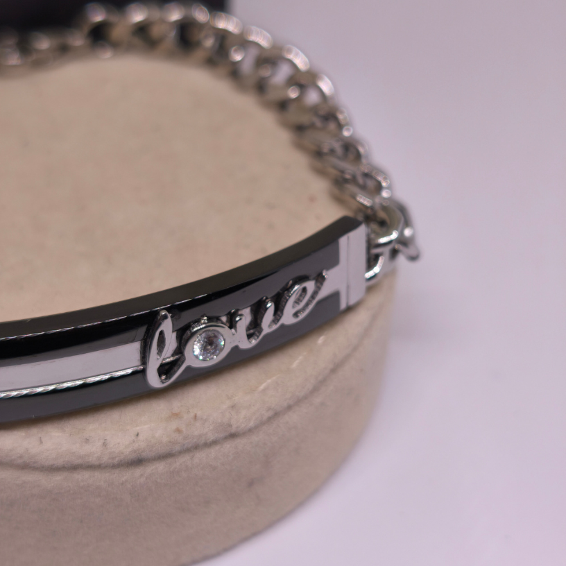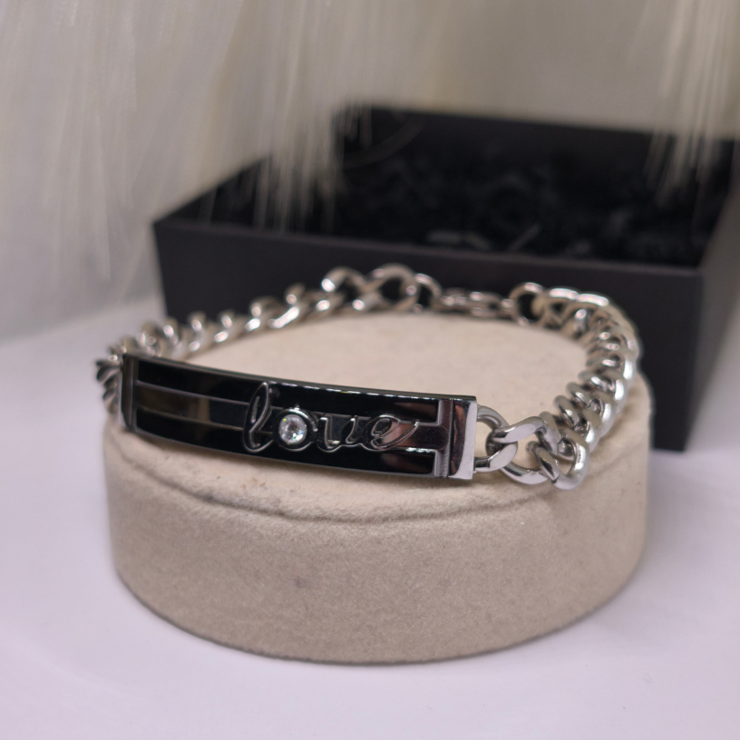 💖 Apyrankė „Love“ – tai meilės ir elegancijos simbolis, kuris spindi subtilumu ir moderniu stiliumi. Pagaminta iš aukštos kokybės nerūdijančio plieno, ši apyrankė puikiai tinka tiek kasdienai, tiek ypatingoms progoms ✨.