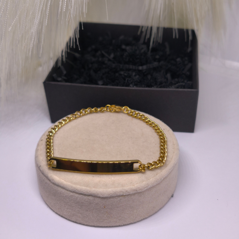 💛 Graviruojama apyrankė „Golden Line“ – tai išskirtinis papuošalas, įkūnijantis prabangos ir paprastumo harmoniją. Auksinės spalvos nerūdijančio plieno grandinėlė su minimalistine lentele atrodo moderniai ir solidžiai, todėl puikiai tinka tiek kasdieniam dėvėjimui, tiek ypatingoms progoms 🌟.