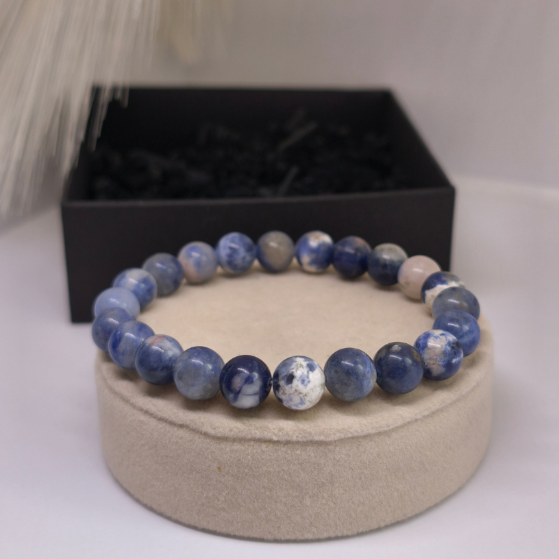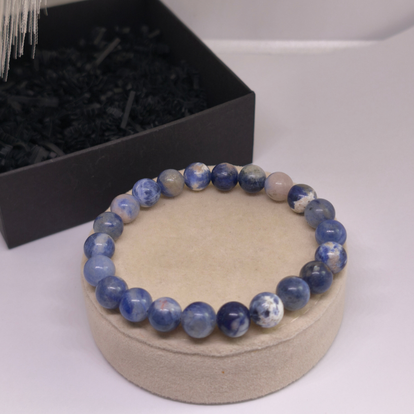 🔵 Chalcedonas vertinamas dėl savo subtilios išvaizdos ir harmoningo spalvų perėjimo, kuris suteikia apyrankei ramybės bei lengvumo pojūtį.