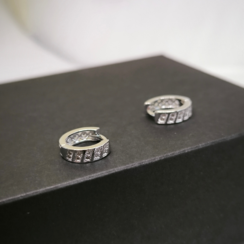 Šie šiuolaikiški žiedo formos auskarai su cirkoniais – tai nepakeičiamas aksesuaras kiekvienai moteriai. ✨ Jie išlaiko klasikinį dizainą, tačiau tuo pačiu pasižymi modernia elegancija, todėl puikiai derės tiek kasdienai, tiek ypatingoms progoms.