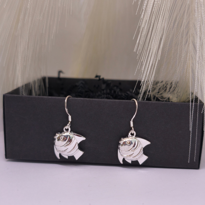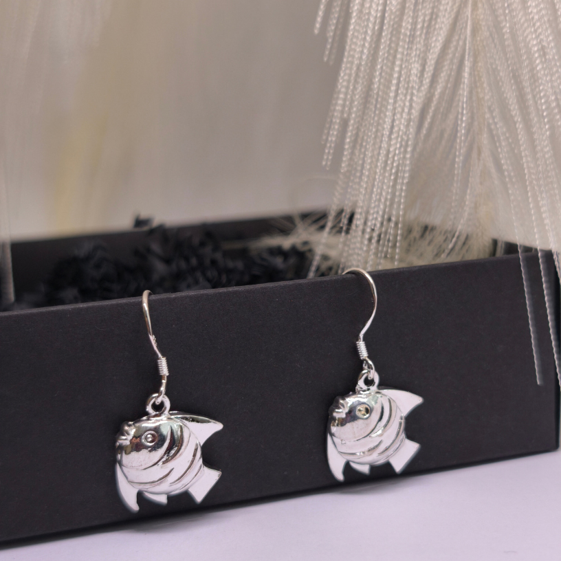 Auskarai „Laimės žuvelė“ – sidabrinio atspalvio auskarai, simbolizuojantys sėkmę, lengvumą ir moterišką spindesį. Puikiai tinka vasarai ar kasdieniam įvaizdžiui.