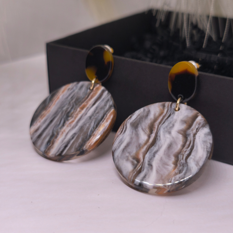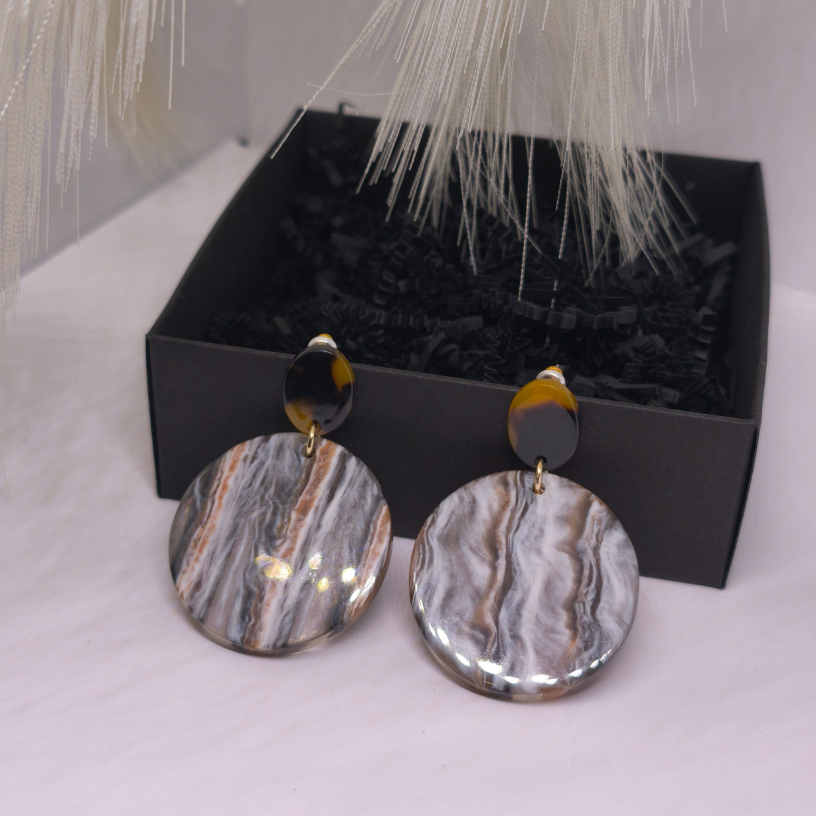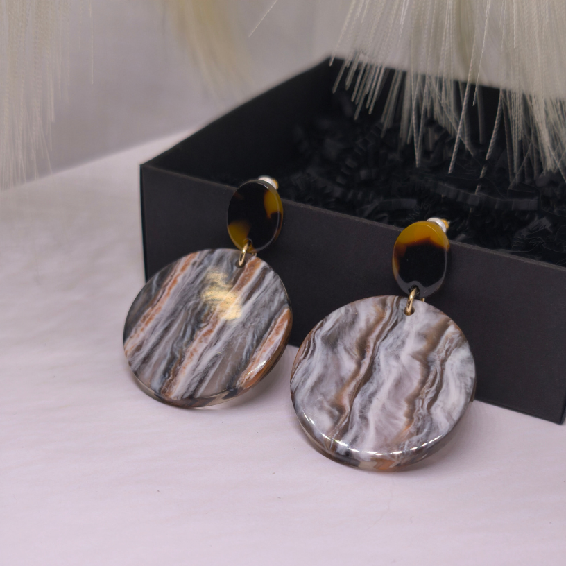 Auskarai „Marmuro paslaptis“ – išskirtinio dizaino aksesuaras su marmuro raštu, spinduliuojantis eleganciją, gamtos ramybę ir subtilų moteriškumą.