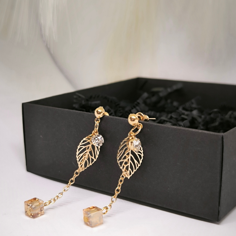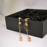 Šie auksinės spalvos auskarai yra tikras meno kūrinys, sukurtas tiems, kurie vertina išskirtinį dizainą ir subtilumą. Trapus lapelis ir karoliukas (galite rinktis iš juodo arba smėlinio) suteikia auskarams unikalumo ir šarmo. 🌟