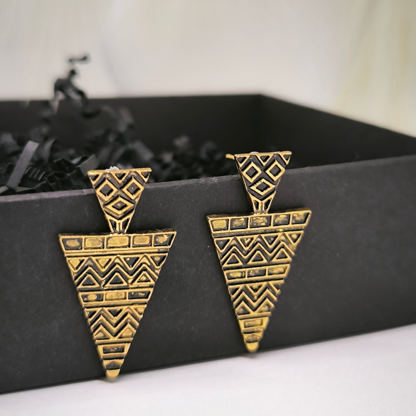 Šie jaunatviški ir išraiškingi auskarai yra skoningai puošnūs, sukurti visoms, kurios neabejingos praeities madų tendencijoms. Klasikinės trikampio formos auskarai, išraižyti įvairiais raštais, suteikia išskirtinumo bei laisvės eksperimentuojant. 💃 Tikrai atrodysite originali, nekasdieniška ir saikingai pasipuošusi, išraiškinga, nebijanti išsiskirti. Jauskitės patogiai bei leiskite atsiskleisti visoms savo moteriškosiosioms savybėms. 👑