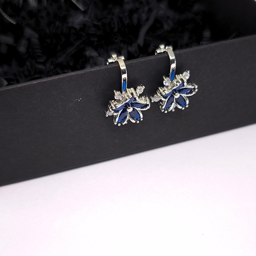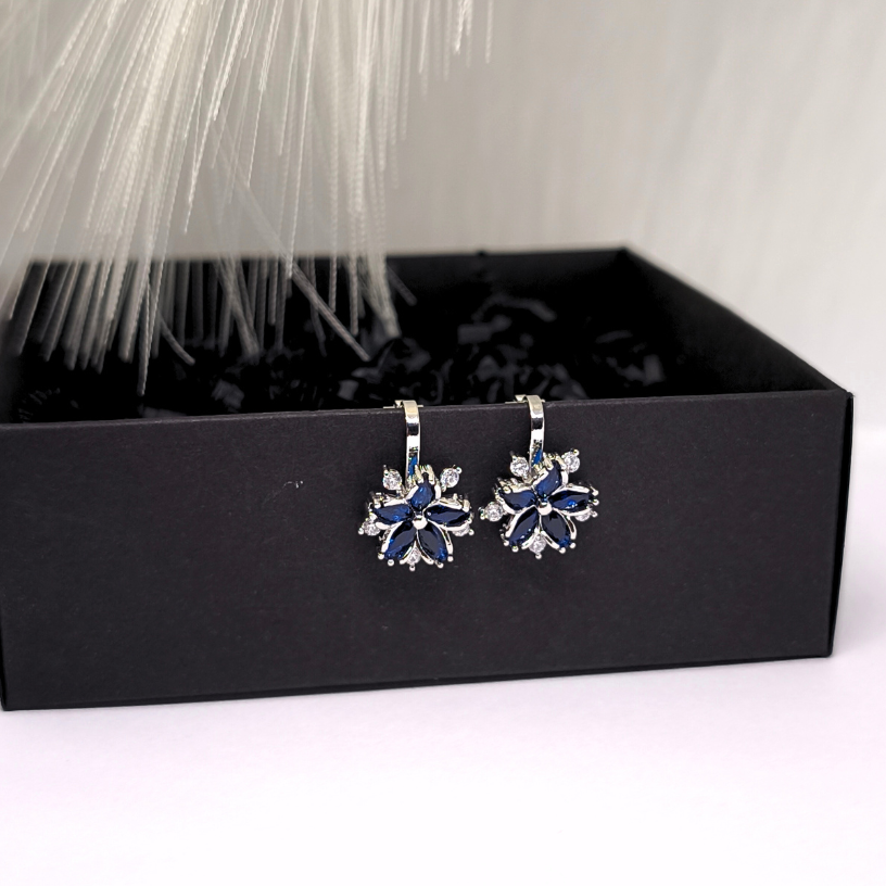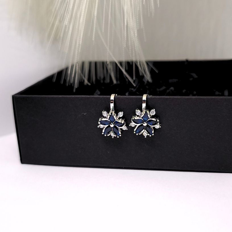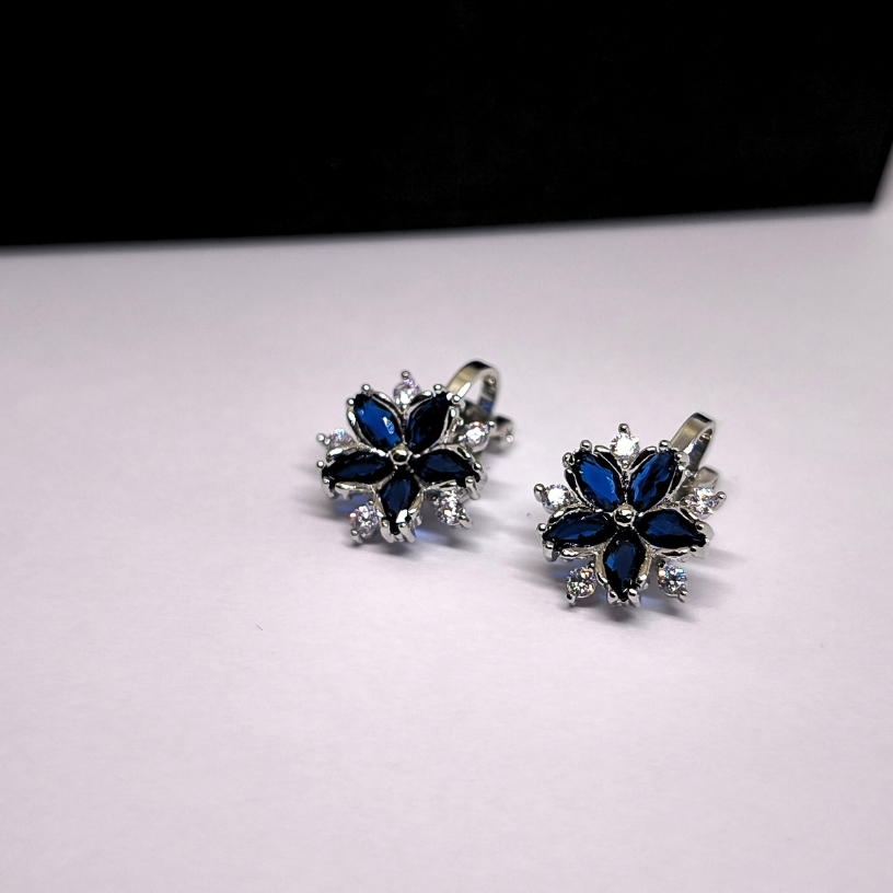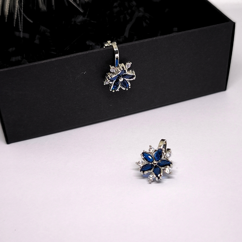 💙 Auskarai–klipsai „Mėlynasis žiedas“ – subtili elegancija ir švelnus žavesys viename aksesuare. Šie auskarai išsiskiria gėlytės dizainu, dekoruotu giliai mėlynais kristalais ir skaidriais blizgiais akcentais, kurie suteikia papuošalui prabangų ir išskirtinį spindesį.
