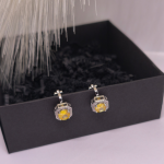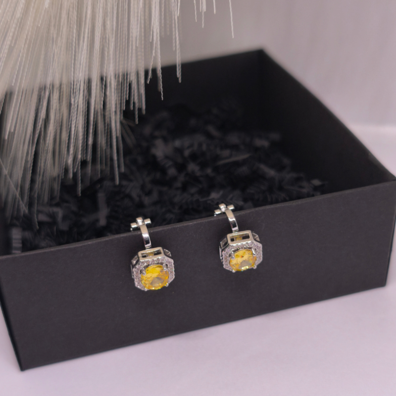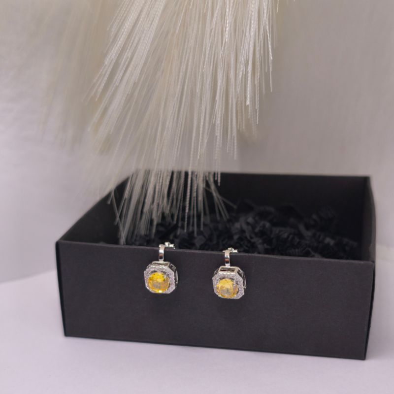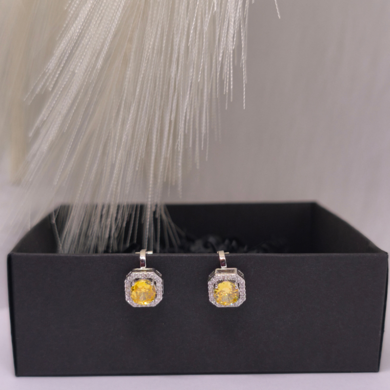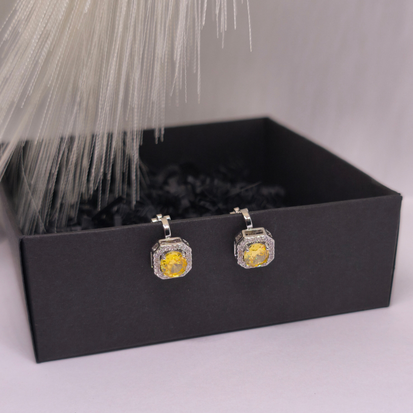 Auskarai – klipsai „Saulės karūna“ ☀️👑 – tai prabangos ir šviesos įkvėptas aksesuaras moterims, vertinančioms eleganciją be kompromisų. Spindintis geltonos spalvos akmuo, apsuptas subtilių kristalų, sukuria karališką „karūnos“ efektą, kuris iš karto patraukia dėmesį. ✨