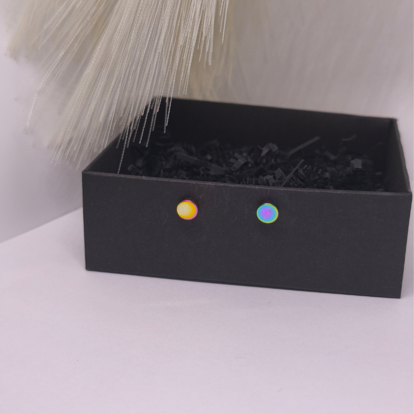 Holografinis, vaivorykštinis paviršius šviesoje keičia atspalvius – nuo šiltų iki šaltų tonų, sukuriant dinamišką ir modernų efektą. ✨🔮 Apvali, minimalistinė forma leidžia auskarus lengvai derinti prie miesto (urban), gatvės (street) ar net minimalistinio vakarinio stiliaus.