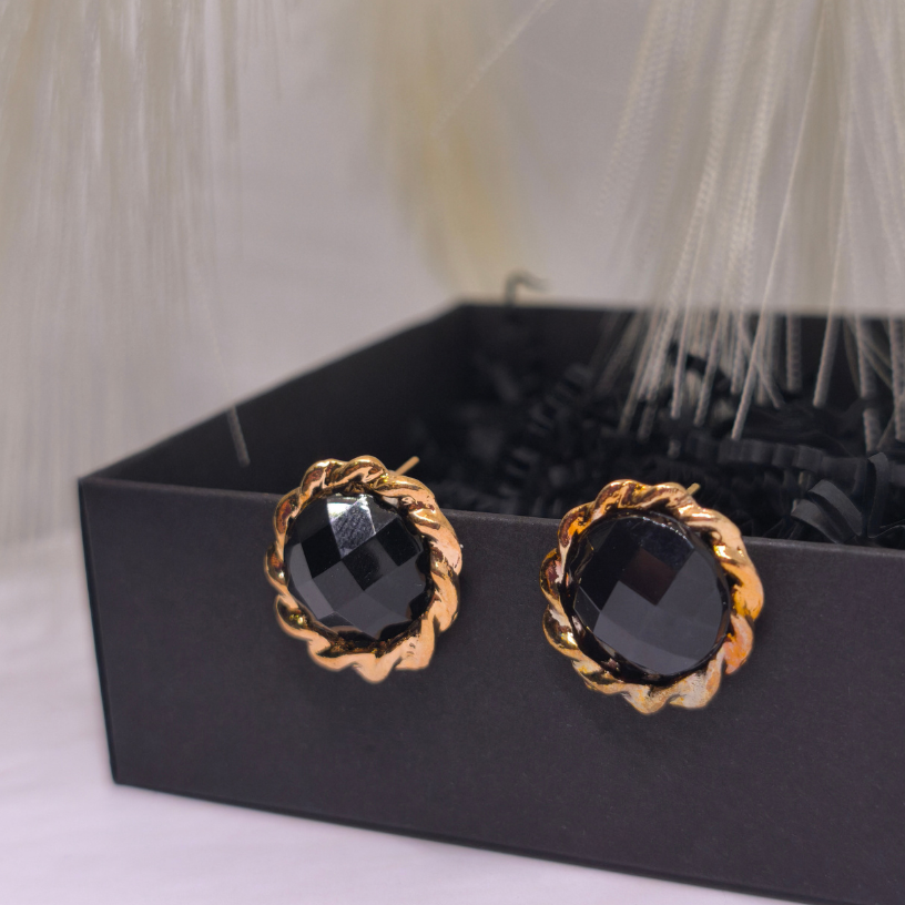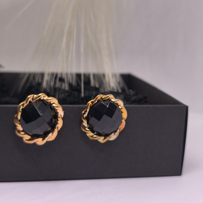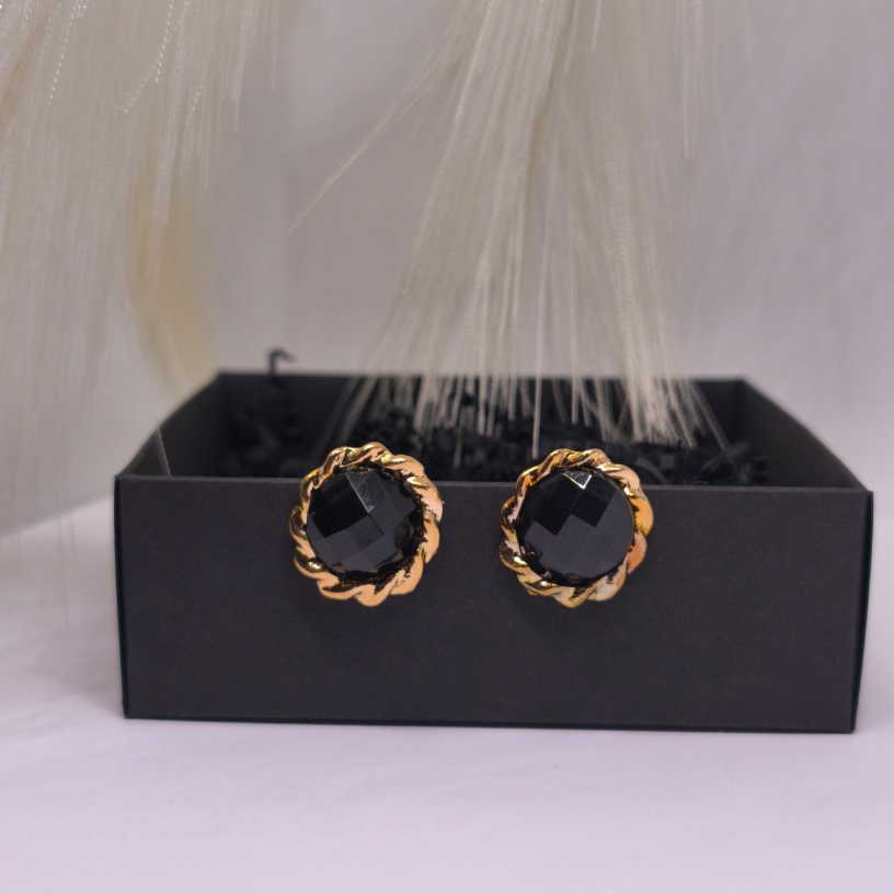✨ Auksinė apdaila pabrėžia juodo akmens gilumą, suteikia auskarams išskirtinumo ir stilingo kontrasto. Klasikinė apvali forma užtikrina, kad šie auskarai niekada neišeis iš mados.