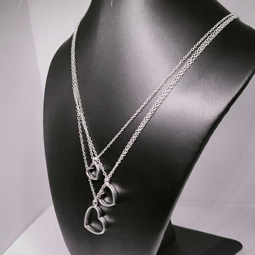 Šis išskirtinis kaklo papuošalas yra sukurtas tiems, kurie mėgsta subtilumą ir prasmę savo aksesuaruose. Jį sudaro trys skirtingo ilgio grandinėlės, ant kurių puikiai dera nuostabios širdelės. 💖 Kiekviena širdelė simbolizuoja skirtingą meilės aspektą, todėl šis papuošalas taps ne tik stiliaus detale, bet ir širdies simboliu jūsų gyvenime.