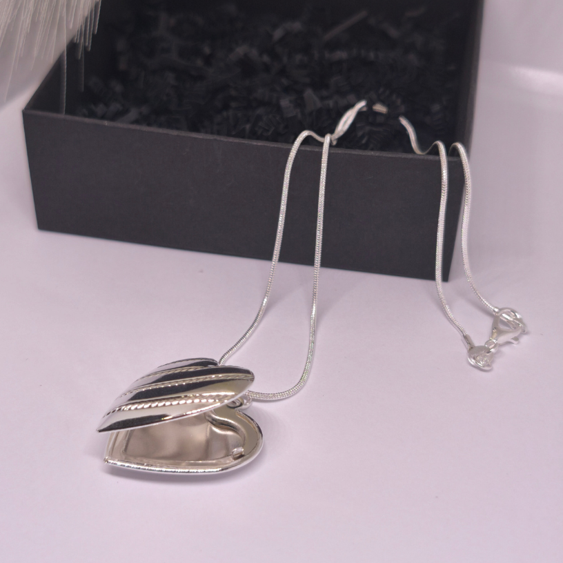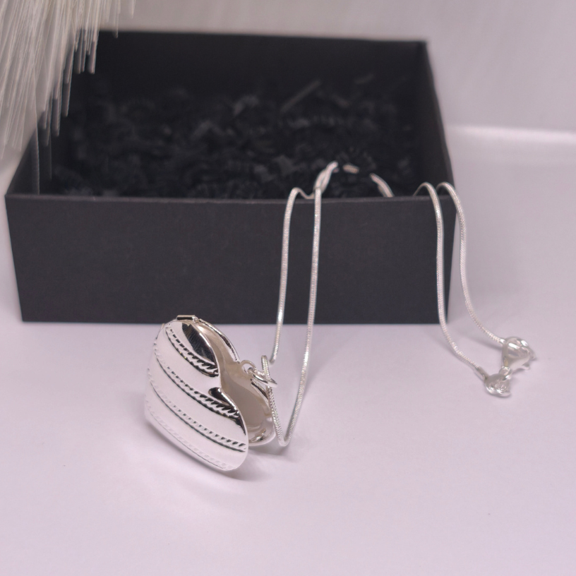 Atveriama medaliono konstrukcija leidžia viduje saugoti mažą nuotrauką, simbolį ar ypatingą prisiminimą. Sidabrinis atspalvis suteikia papuošalui lengvumo ir universalumo, todėl jis puikiai tinka tiek kasdieniam nešiojimui, tiek ypatingoms progoms.