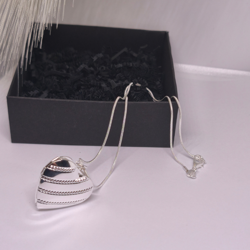 Medalionas „Jausmų ritmas“ – subtilus ir elegantiškas kaklo papuošalas, simbolizuojantis emocijų tėkmę ir širdies pulsą. Širdelės forma ir švelnios linijos sukuria harmoningą, laikui nepavaldų akcentą.