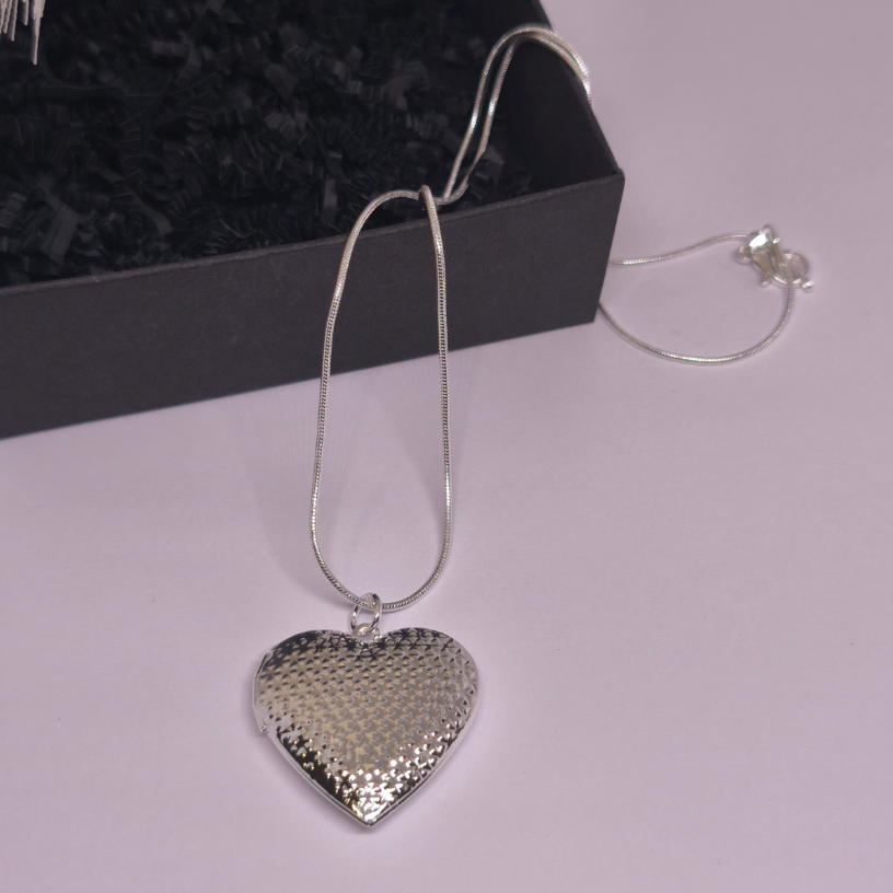 Šis išskirtinis širdies formos medalionas sukurtas tiems, kurie vertina subtilumą, emocinę prasmę ir laikui nepavaldų dizainą. Sidabrinės spalvos paviršius su smulkia faktūra švelniai atspindi šviesą, suteikdamas papuošalui elegancijos ir rafinuotumo ✨.