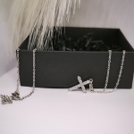 „Šviesa tavyje“ – tai išskirtinis sidabrinės spalvos moteriškas kaklo papuošalas su spindinčiu kryželiu, inkrustuotu kristalais 💎. Subtilus kryželio dizainas simbolizuoja vidinę ramybę, tikėjimą ir moterišką švytėjimą 🌟.