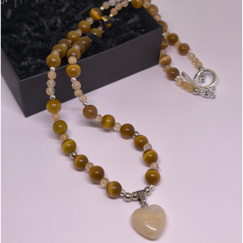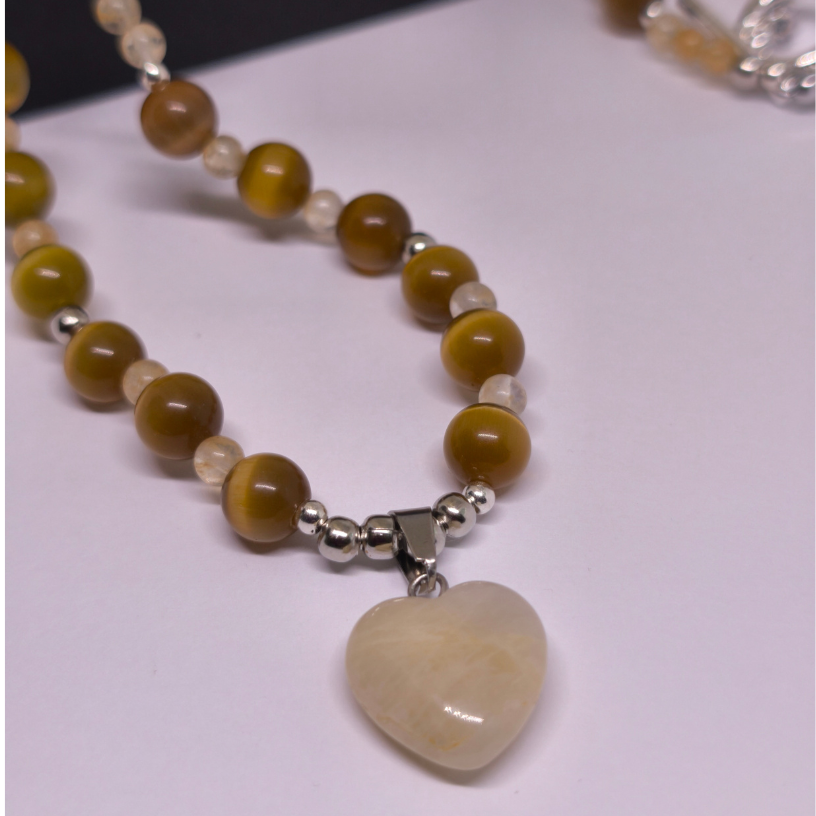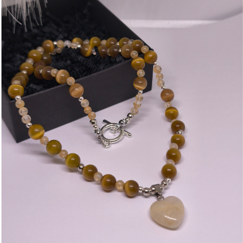 Leiskite šviesai spindėti kartu su jumis – šis unikalus rankų darbo kaklo papuošalas „Saulės spindesys“ sukurtas iš natūralių katės akies ir rutilo kvarco karoliukų, kurių šiltas atspalvis primena saulės šviesą bei vidinę ramybę 🌼.