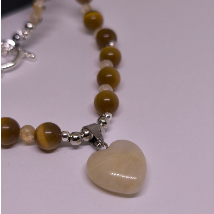 Aukštos kokybės karoliukai derinami su sidabro spalvos detalėmis, o širdelės formos pakabukas suteikia papuošalui švelnumo ir moteriškumo 💖.