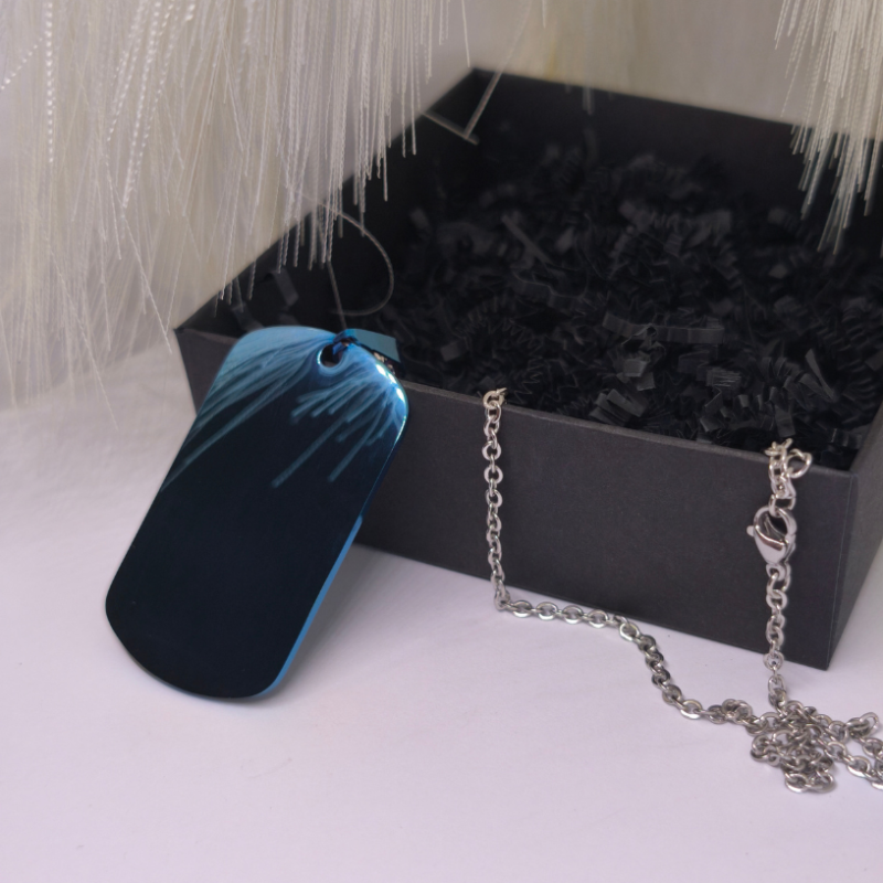 💙 Graviruojamas kaklo papuošalas „Blue Steel“ – tai modernus ir stilingas pasirinkimas vyrams, vertinantiems išskirtinumą, minimalistinį dizainą ir asmeninę prasmę.