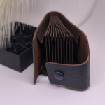 Dėklas pasižymi kompaktišku, tačiau talpiu dizainu – viduje rasite kelis patogius skyrelius banko, lojalumo ar vizitinėms kortelėms. Tvirtas spaudžiamas užsegimas padeda saugiai laikyti turinį ir apsaugo korteles nuo iškritimo. 🔒