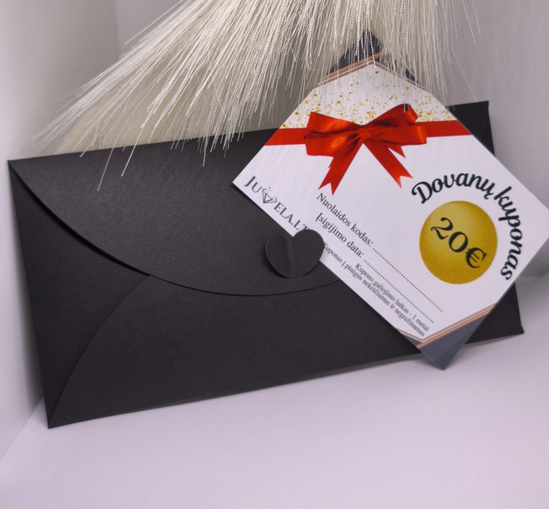 - 🎁 Juvela.lt dovanų kuponas – galite pasirinkti 20 €, 50 € arba 100 € vertės kuponą (galiojantis visoms prekėms mūsų parduotuvėje).
