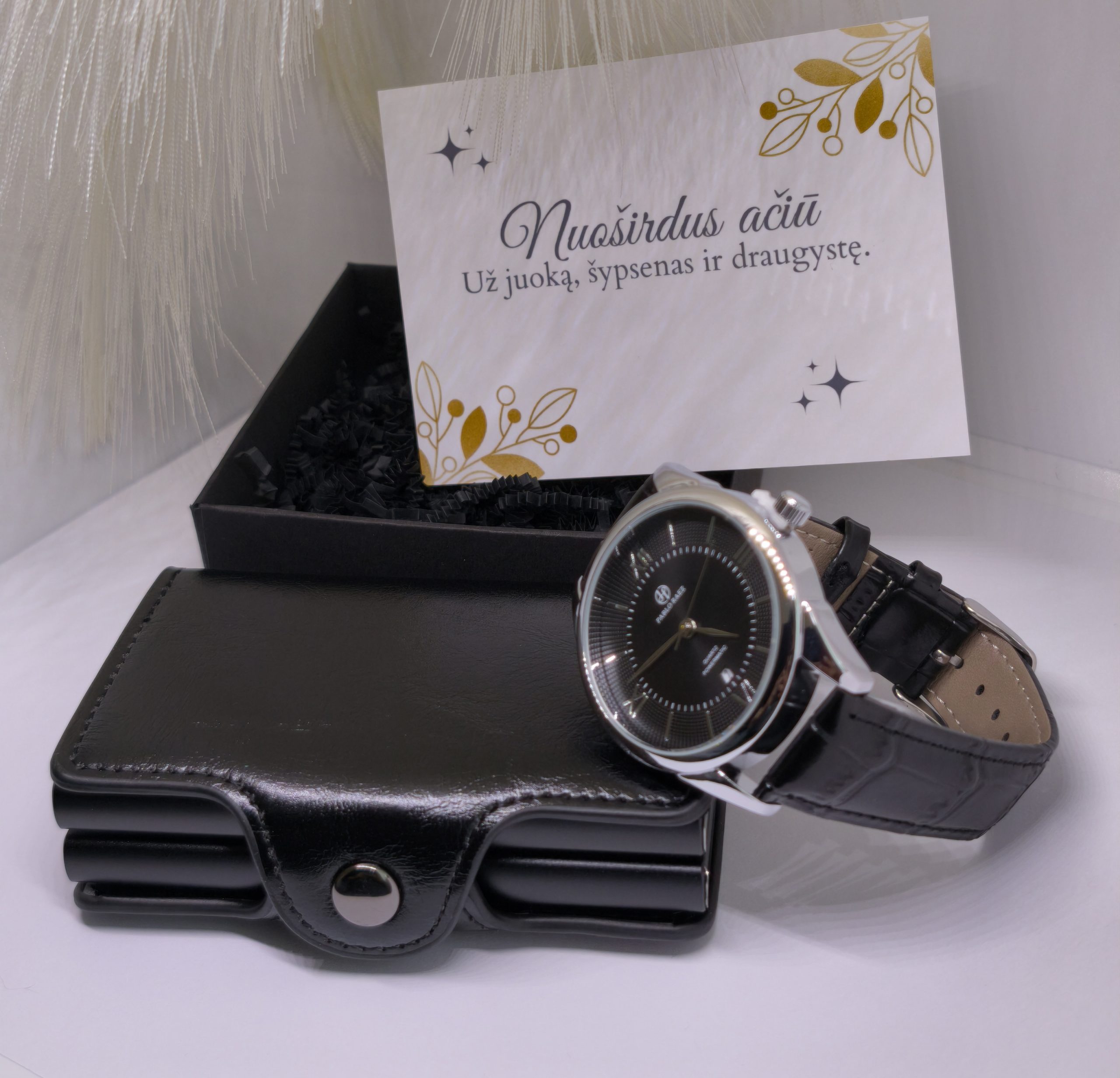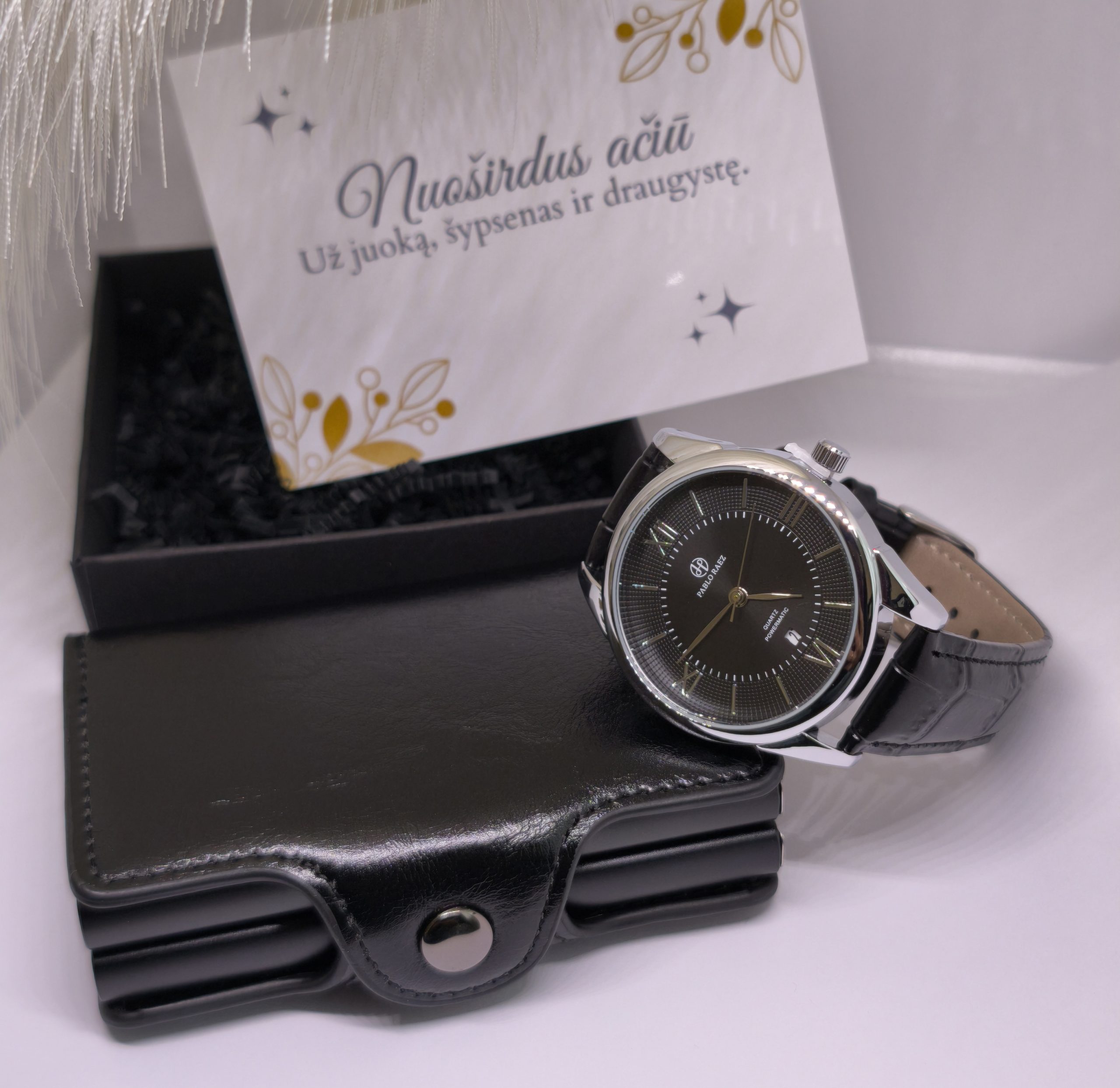 - ⌚ Elegantiškas laikrodis – stilingas ir prabangus aksesuaras, tinkantis prie verslo ir laisvalaikio aprangos.