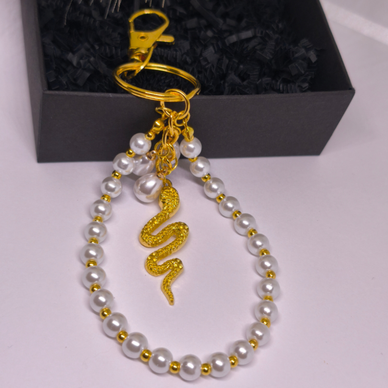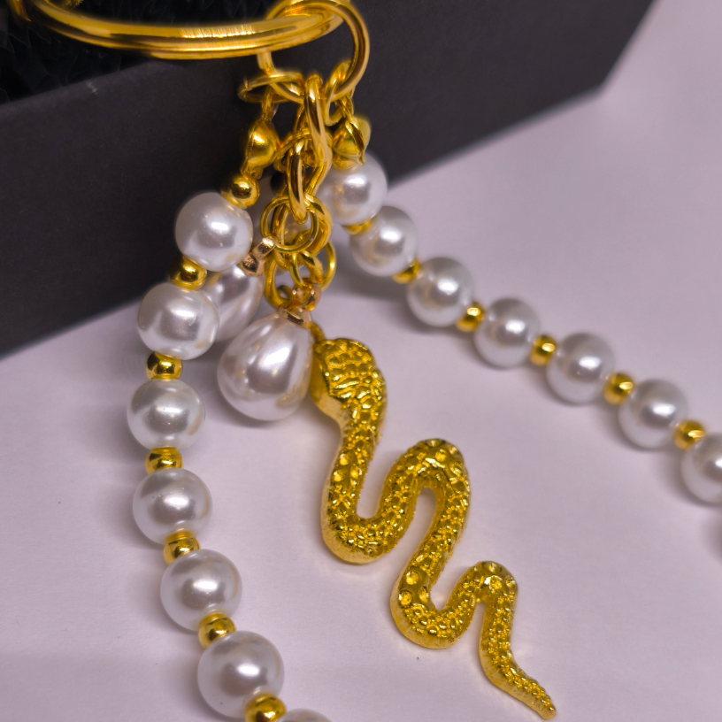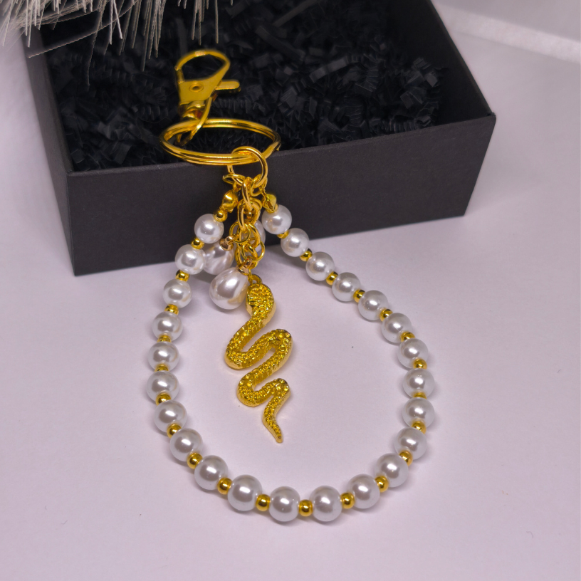 Rankų darbo rankinės ir raktų pakabukas „Perlinė gyvatė“ – prabanga ir stilius viename 💎🐍